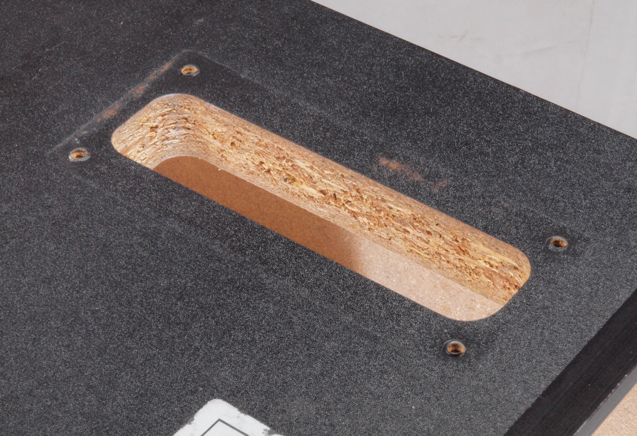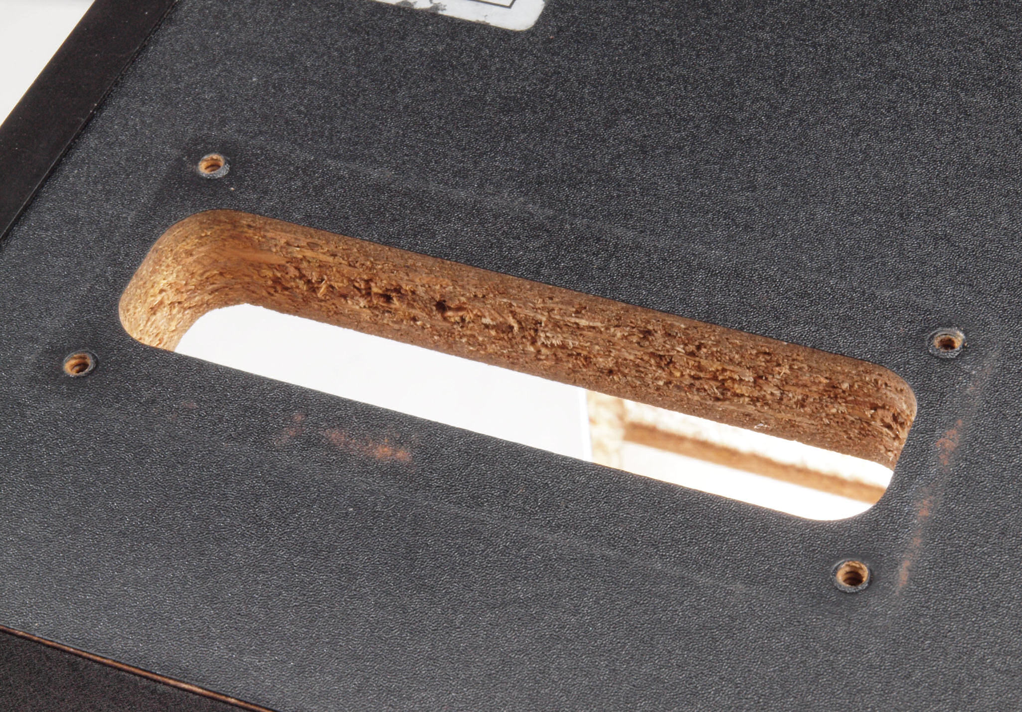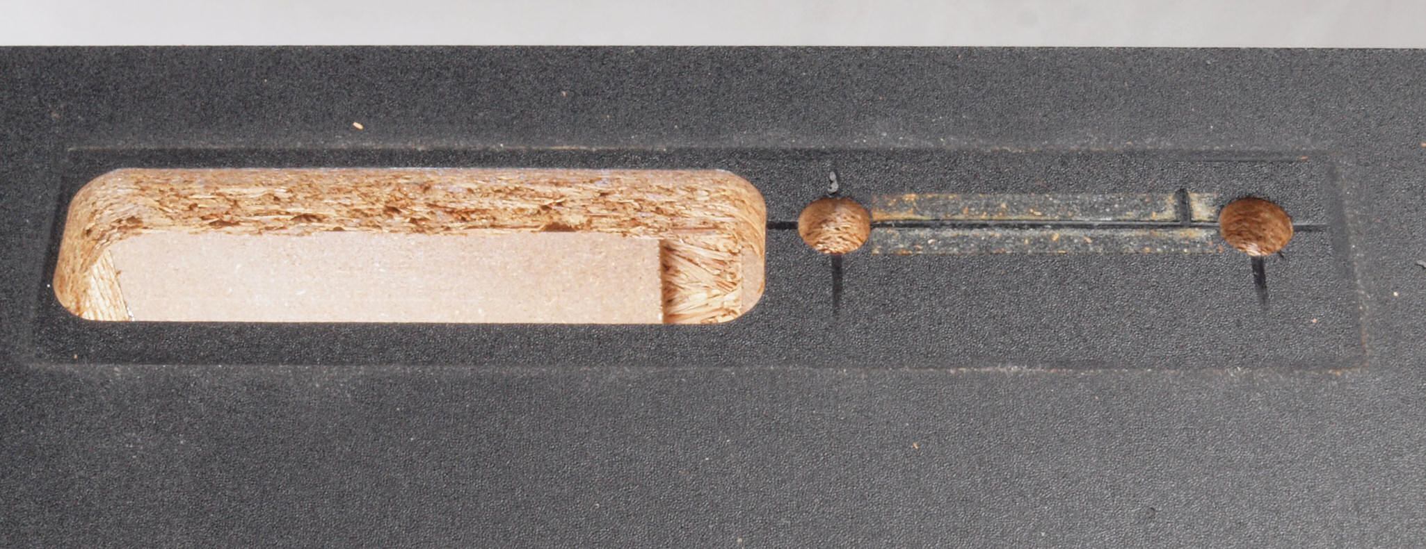C55. 修理中 「操作パネル」取り付穴反対側。、ボンドを染みこませる。