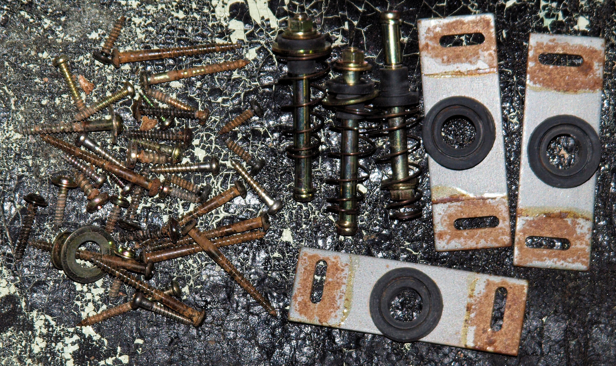CB1. 修理(塗装)前 ポンプ取り付け金具、各種止めネジ類。