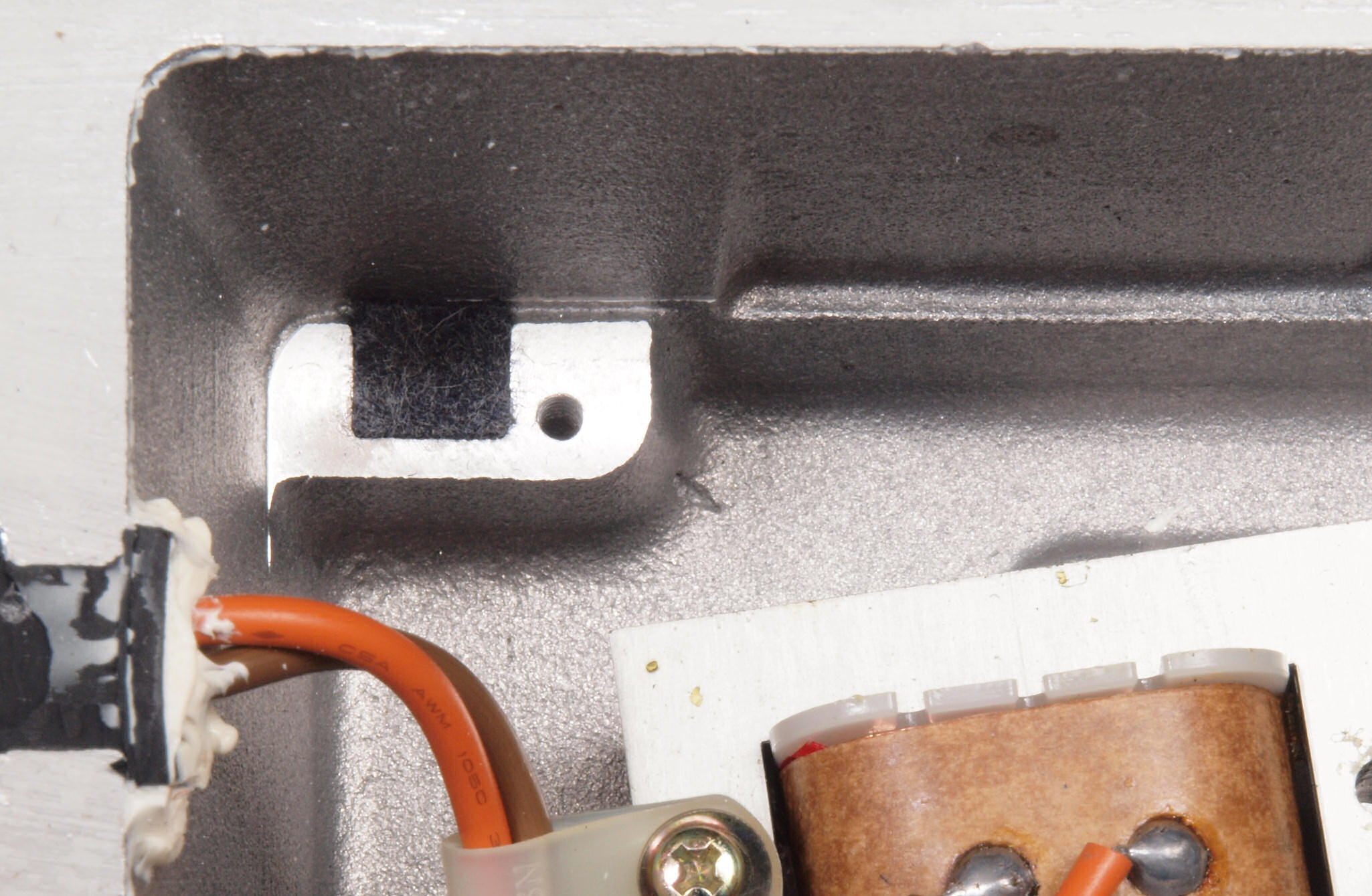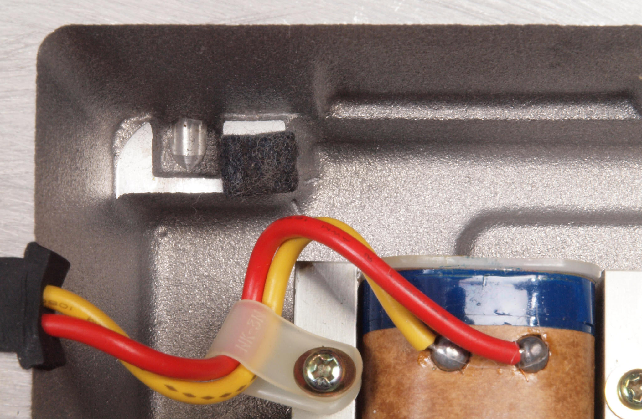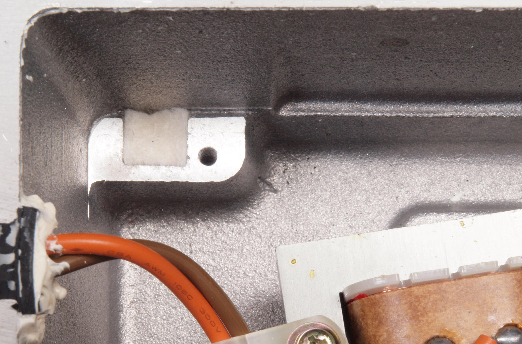 C78. 修理中 ヒューズ取付け圧縮板左横側、ボンドを染みこませる。