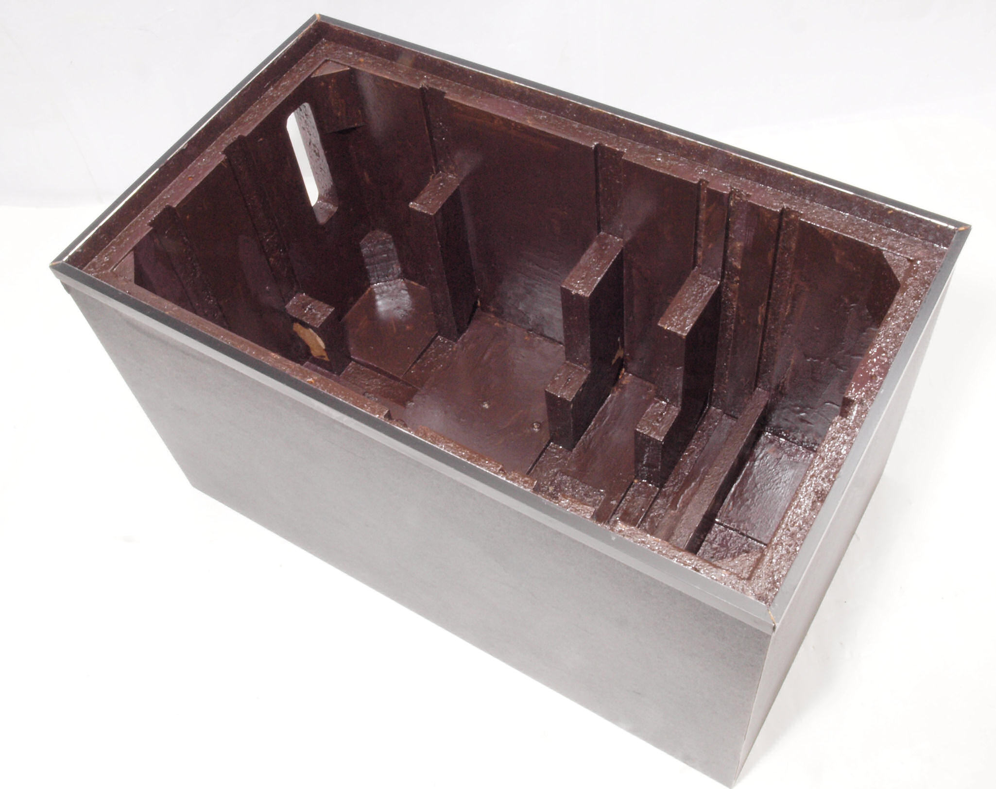 C46. 修理後 接着材が劣化した木箱、下前右から見る。 さらに、塗装する。