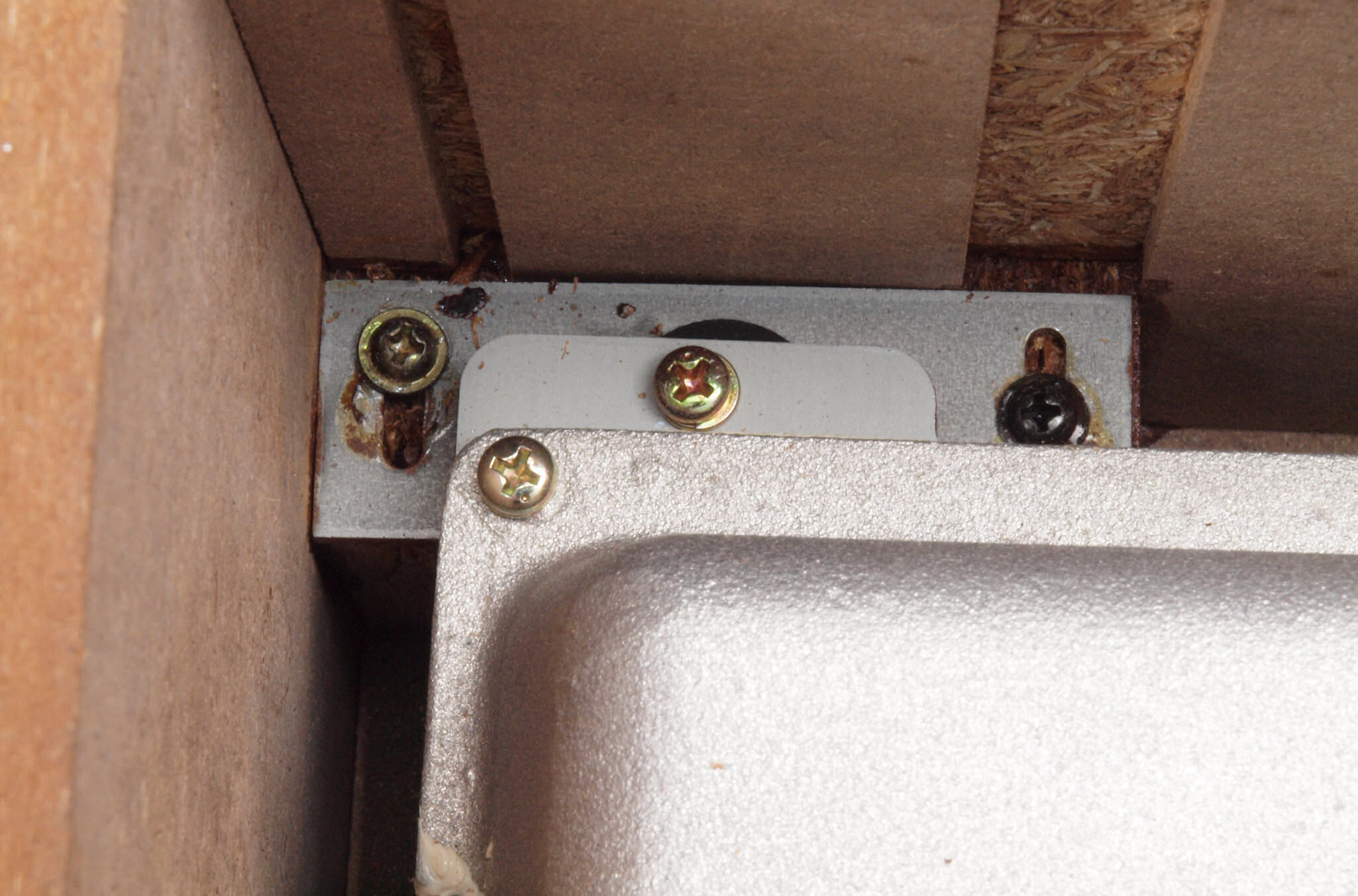 CD4. 修理(塗装)前 電源SW・LED取付金具裏。此方まで錆が出ている。