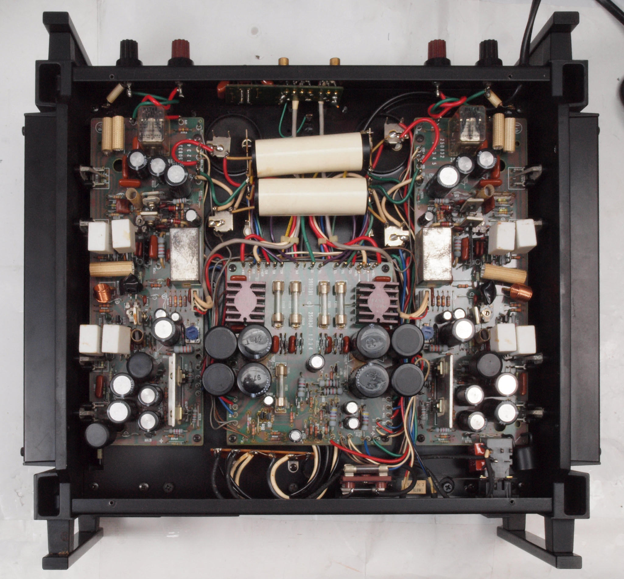 初段FET(電界効果トランジスター)、バランス/バイアス調整用半固定VR3個、SP接続リレー交換