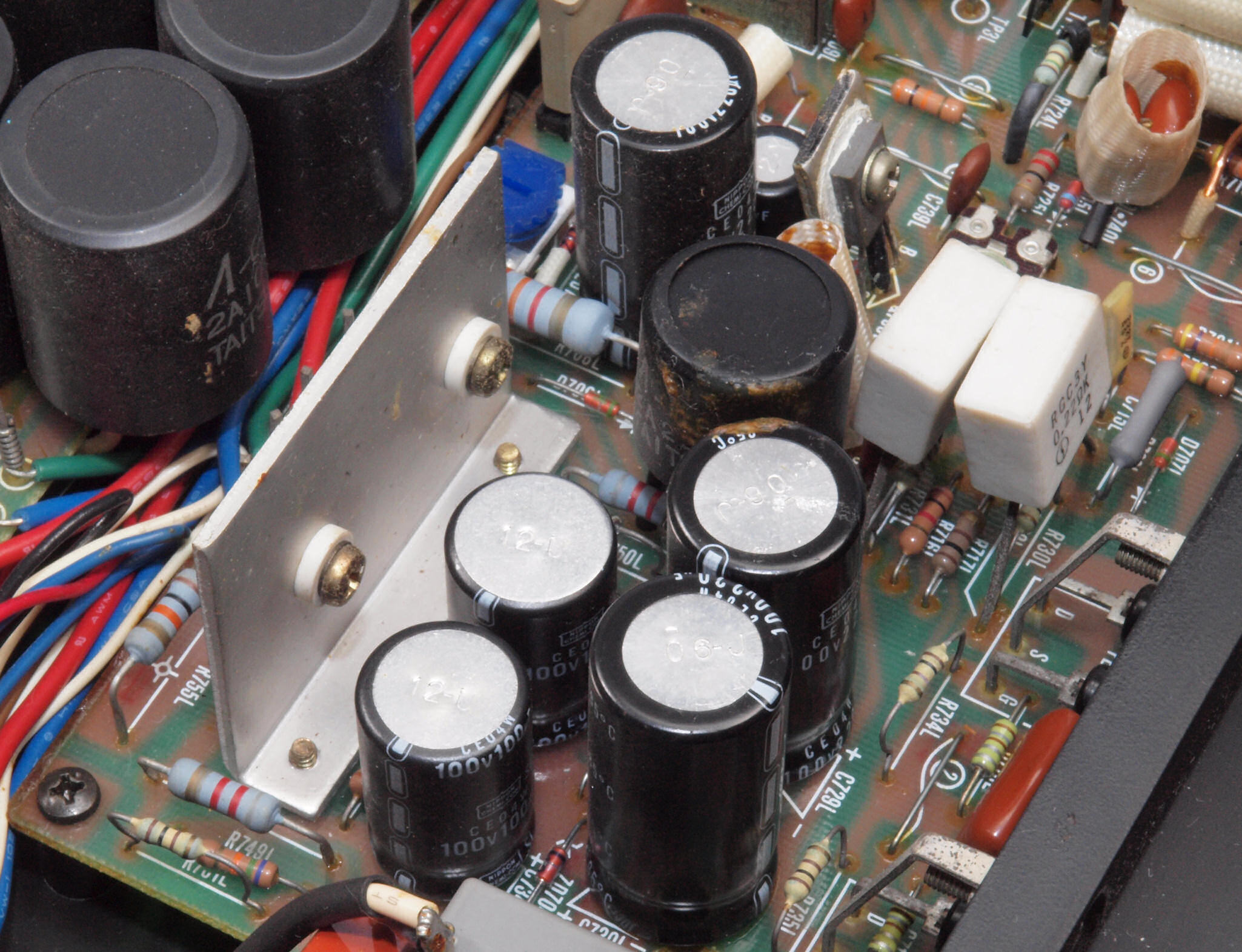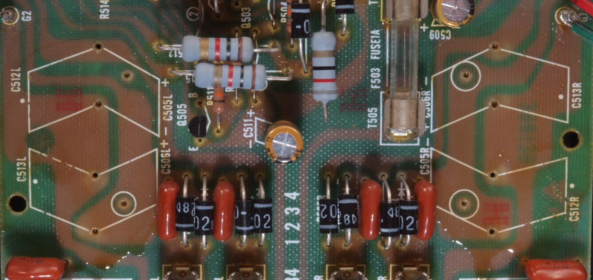 | A42. 点検中 L側ドライブ基板の電解コンデンサー頭のビニールのむけ。 |