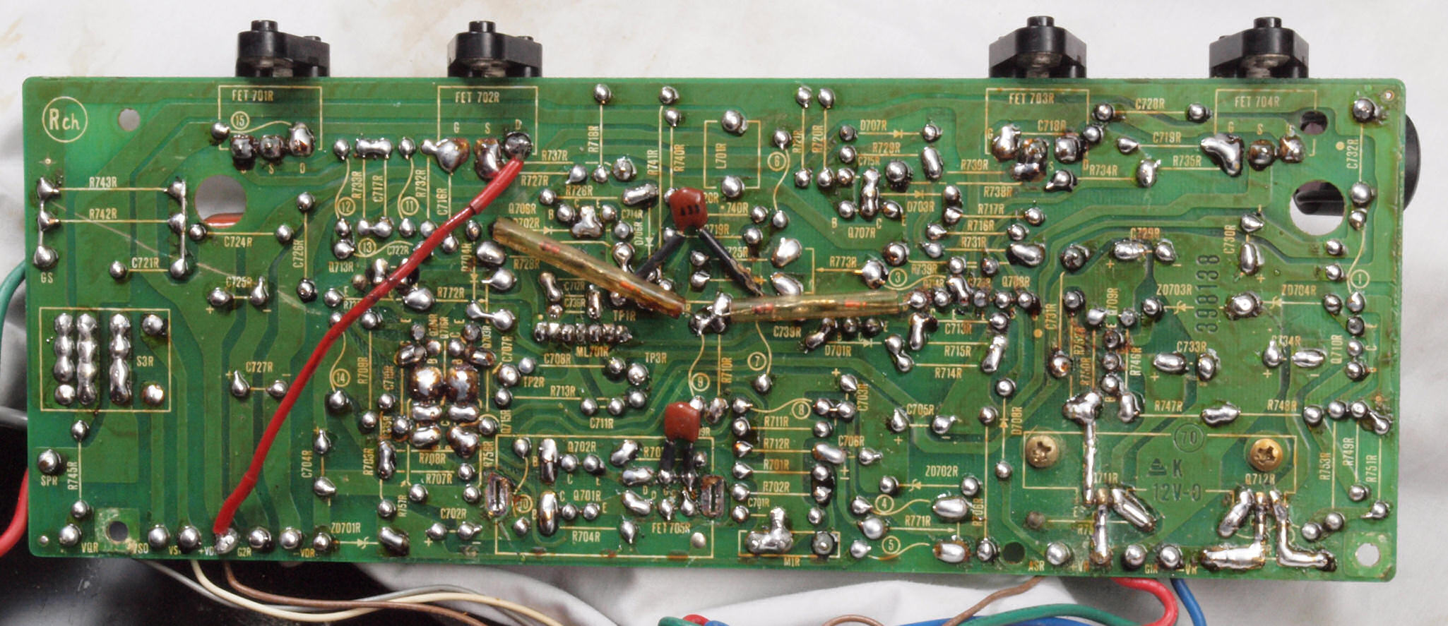 | C15. 修理(半田補正)後 R側ドライブ基板裏 半田を全部やり直す。 普通はこれで完成。 |
