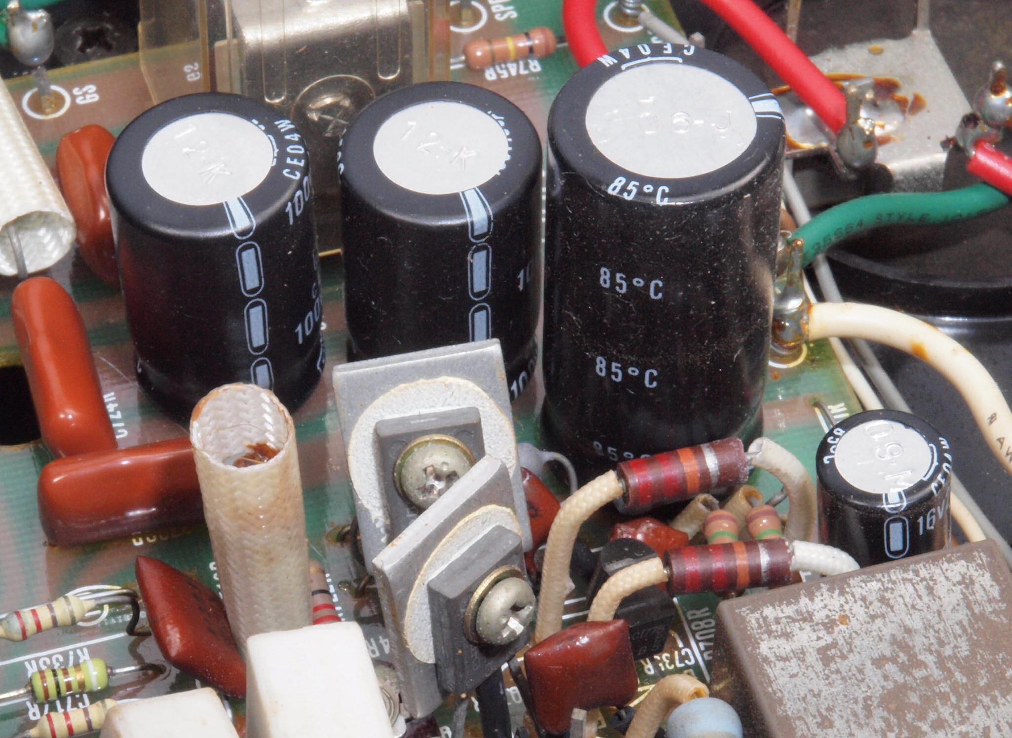 | A52. 点検中 電解コンデンサー外観比較、220μ/100V |
