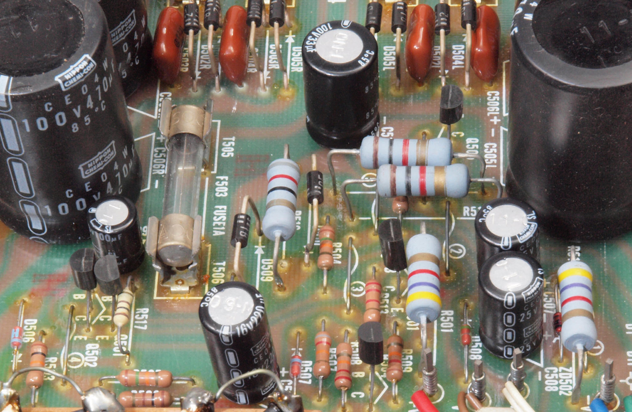| C43. 修理中 RLモジュール裏。 TR(トランジスター)6個交換し、洗浄後軽くラッカーを吹く。 |