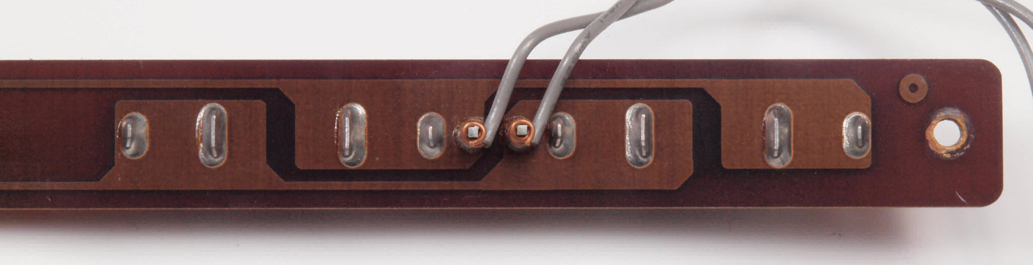 C42. 修理前 定電圧電源基盤裏。基板はガラスエポキシ基板、銅箔は厚い。