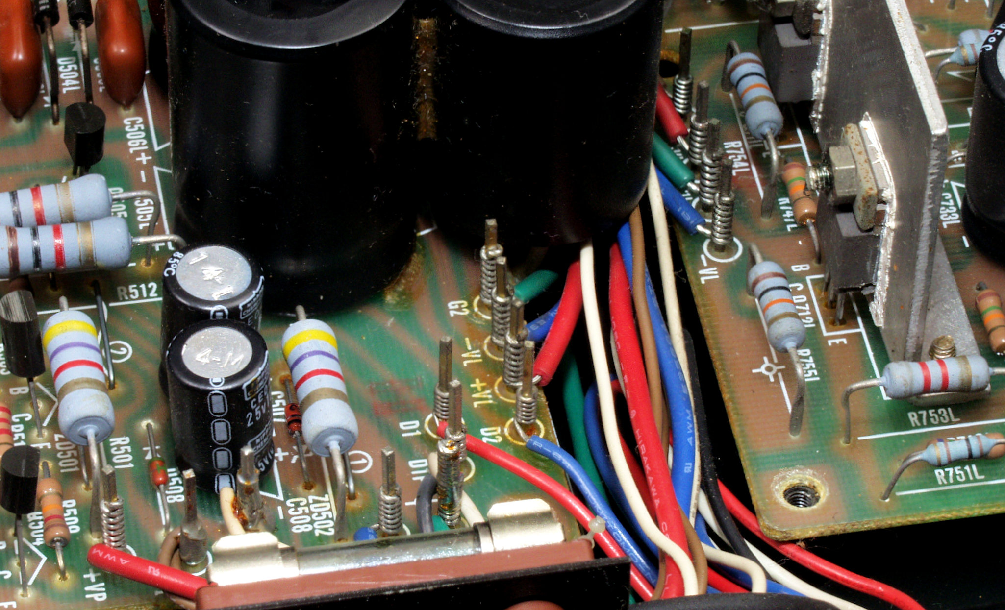 | CAF. 修理後 R側ドライブ基板−電源基板へのラッピング線に半田を浸み込ませる |